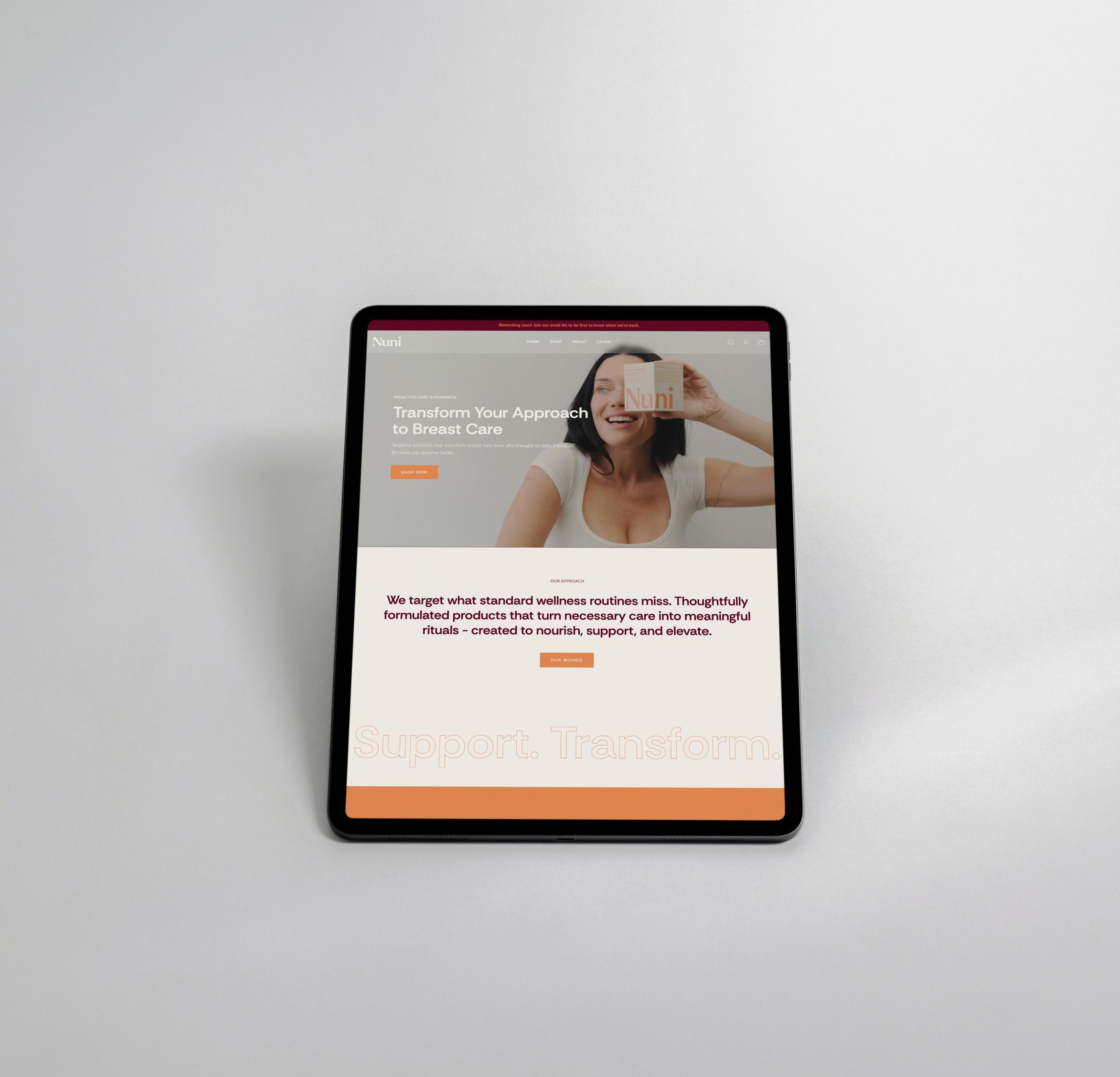 We were approached to provide a Shopify store design overhaul for the new Nuni Wellness brand, to ensure it waas aligned with their investment in a new brand strategy, packaging design, tone of voice and overall aesthetic. The end product is a website that has native and well-known Ecommerce features that users have come to expect, paired with a playful yet professional design to bring a lighter tone to the serious topic of womens health.